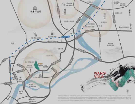 项目位于杭州稀缺的背山面水之地,依偎黄公望森林公园南麓与富春江水之间,距离滨江区仅约20公里,直线距离西湖风景区、钱江新城、钱江世纪城均约为25公里,完美置身于杭州半小时经济生活圈内。
