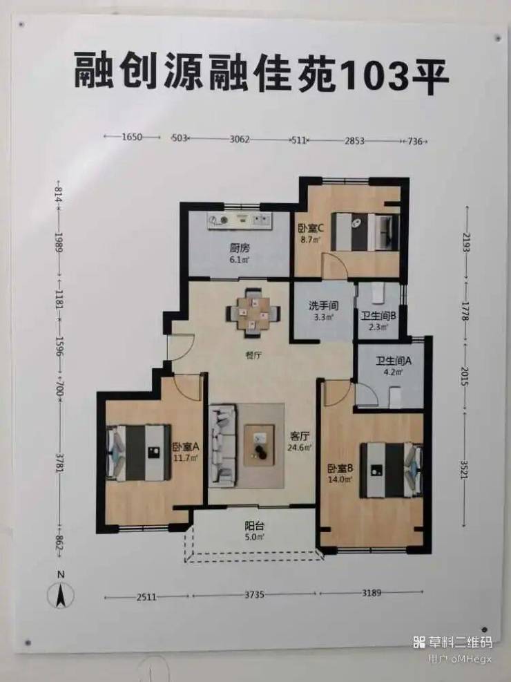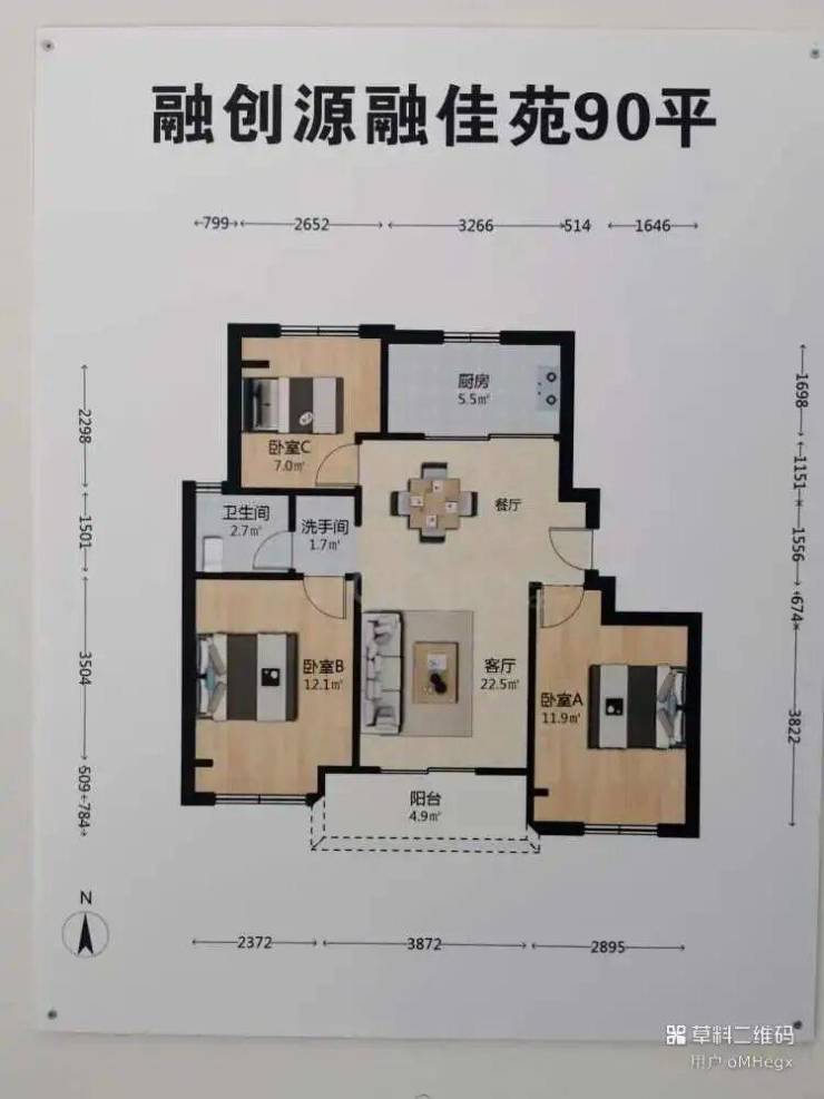 从公示的房源信息来看,户型是90㎡左右3房1卫,各个楼层都有。室内是带装修的,2024年已竣工。