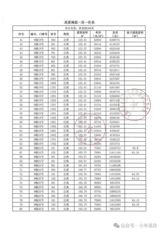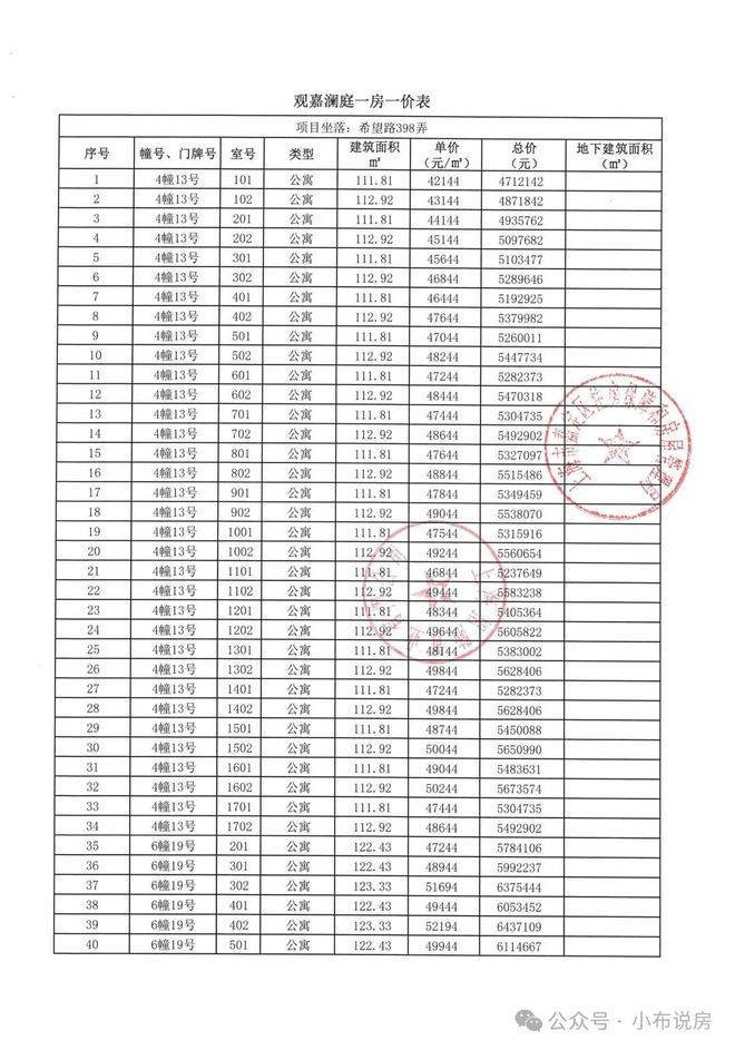 <一房一价表>