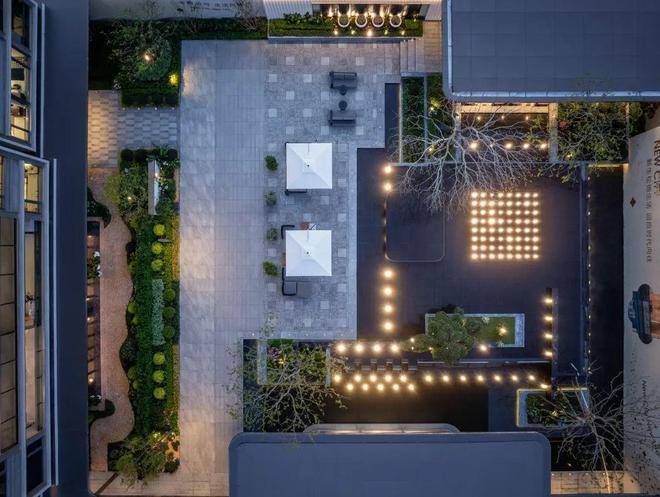 在中央设置了度假泳池综合区,规划泳池吧台、卡座等多个功能区,旁边还设计了颇富江南韵味的阳光水院和临水廊亭,且无界联通健身区、童趣乐园、长者花园等主题空间,营造步移景异的多重园境,下楼就能拥有度假酒店的松弛氛围。