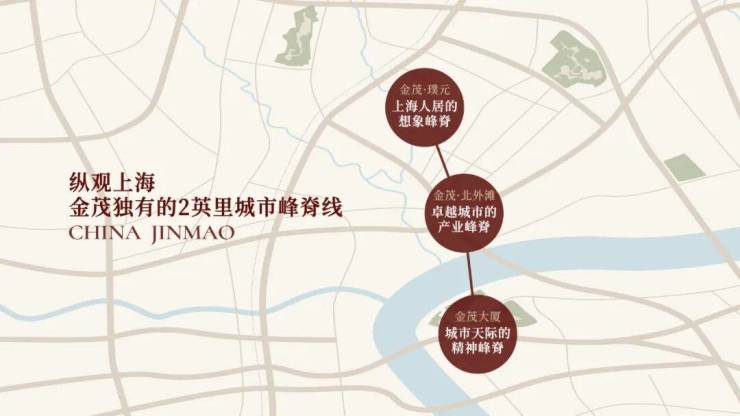 沿着黄浦江东西,金茂实现了自己独一无二的2英里峯脊线,串联金茂大厦、金茂·北外滩、金茂·璞元,城市高度、产业高度、人居高度,三座峯并肩而立。