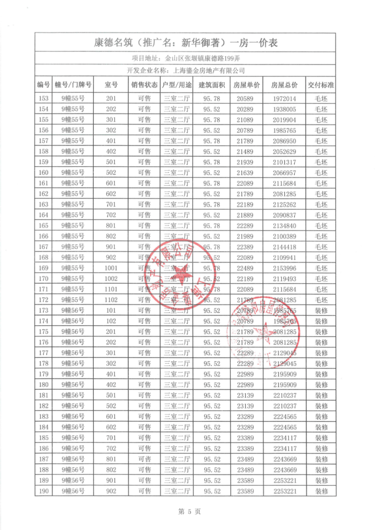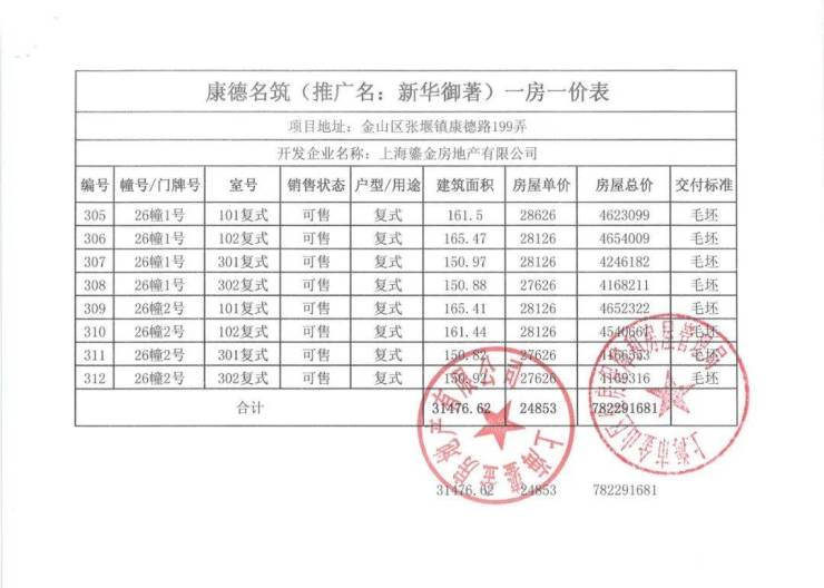 一房一价表如下:
