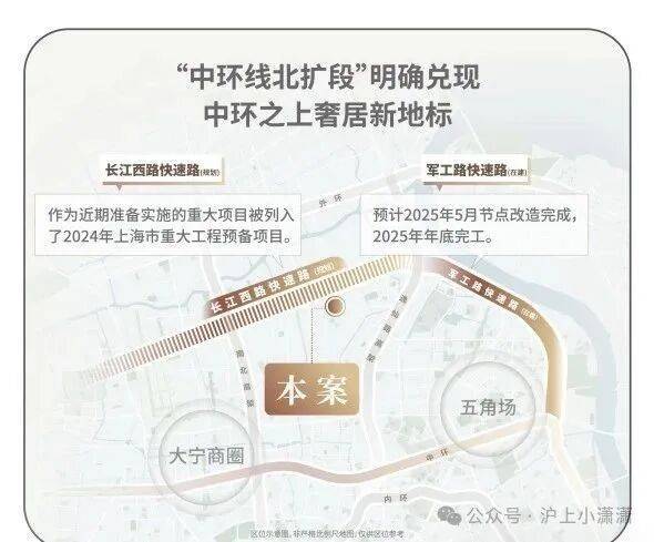 中环线北扩段明确兑现,军工路快速路25年开工,长江西路快速路列入上海市重大工程清单预备项目,快速链通城心,随着中环线北扩段的政策明确,淞南将正式进入中环时间。未来经逸仙高架,进入南北高架、内环高架、中环高架,可快速链通南北上海;多维立体路网全面升级,未来区域价值再攀新高。
