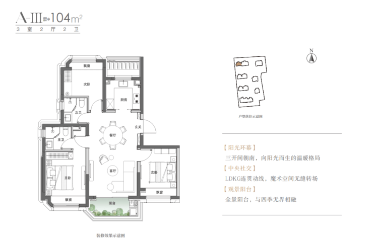 建面约104㎡ 3房产品,标准飞机户型,更适合上车的产品,三开间朝南,客厅面宽达到了约3.9米,大面宽加持下,空间获得感十足,百平三房空间堪比市面约120㎡左右户型。