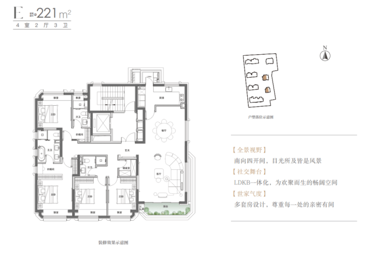最让独家君心动的,当属这个建面约221㎡的四房产品。