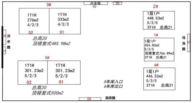 -1、2、6号楼(整层一户):446-454㎡,5房3厅6卫,客厅朝东、南、北三面采光,主卧、次卧、书房朝南,两个客卧朝西,厨房和餐厅朝北,空间布局合理,采光通风极佳。