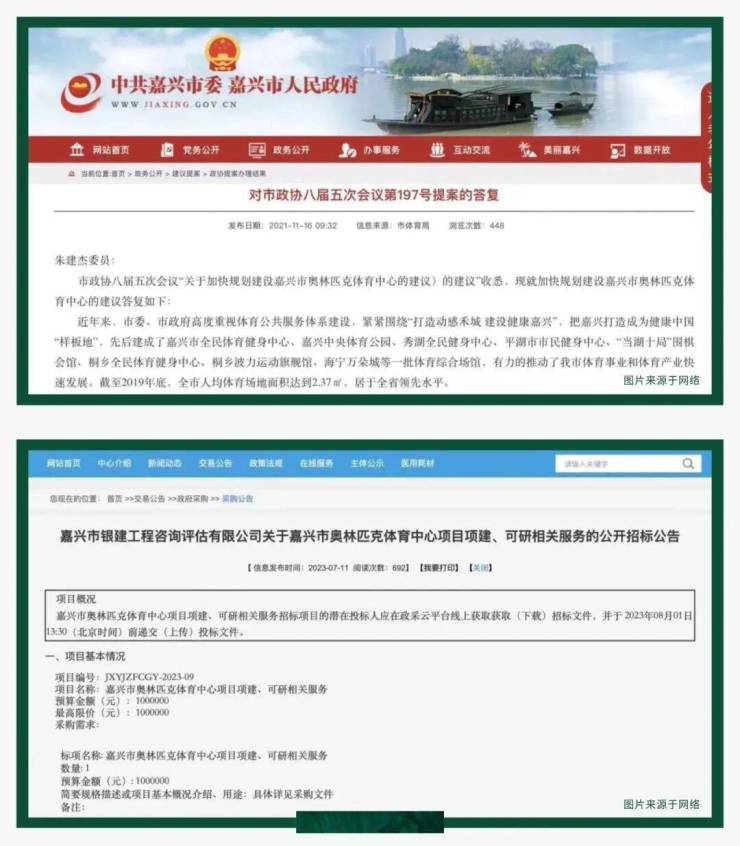 而在7月11日,市公共资源交易网发布关于嘉兴市奥林匹克体育中心项目项建、可研相关服务的公开招标公告。