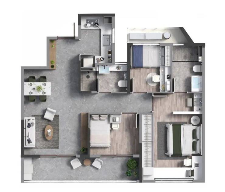 以样板间建面约89㎡的户型为例,做到三房两卫的设计;