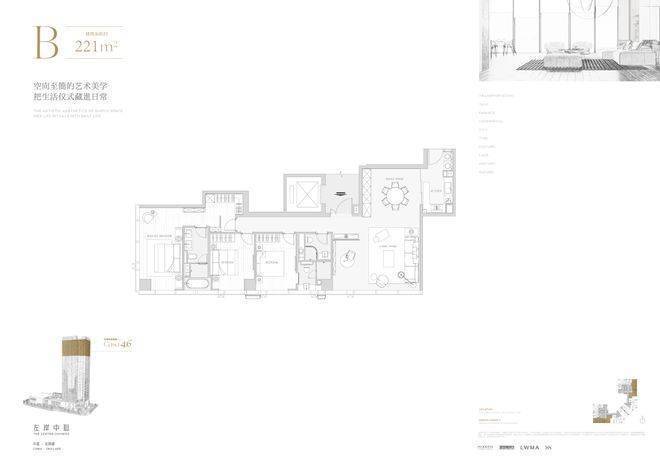 奢阔尺度,演绎空中平层的生活样本项目规划了46层全精装垂直空中花园社区,铝板与玻璃幕墙勾勒出现代美学立面。共打造了6款建面约191-326㎡的超高大平层,分为高区和低区。无论是约191㎡的舒居三房,还是约326㎡的奢阔端厅,每一款都配备国际一线品牌精装,旨在为中心人物打造一个资源型的全能生活场。
