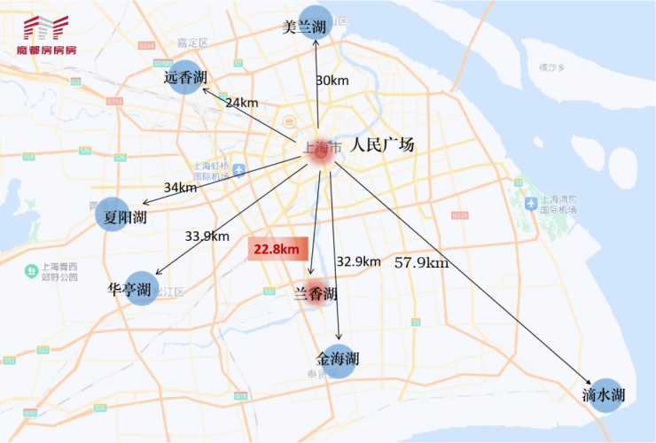 更重要的是,它的地段也无可比拟,从地图上能够看出,兰香湖是距上海市中心(人民广场)最近的湖系资源,凭借上海少见的一线湖景特质,也为兰香湖2号赋予了稀缺的价值内涵。