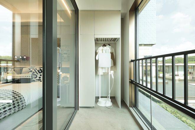 晴翠的匠心,还藏于细节:类一梯一户设计与独立玄关,守护归家的私密与仪式感;门内,日立中央空调、迈迪龙新风与地暖,臻心守护日常,恩仕智能马桶与美妆镜柜于方寸间尽显优雅,高效厨房搭配老板五件套让烹饪得心应手,全屋精妙的收纳系统,则让生活秩序井然。