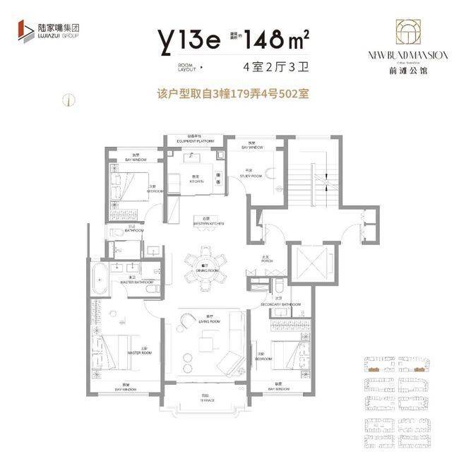 约139/149m²四房产品,非首层层高进一步达到约3.15米,部分首层层高约3.25米,舒适度升级。