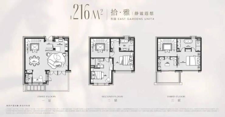 以建面216平户型为例,地面总高3层,地下一层5.5米带夹层,地下室面积就达到120m²,另外有露台、花园等,项目平均附赠也达到了约60%!