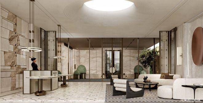 归家的尊崇感,从踏入宽约24米、高约6米的酒店式瑰丽门庭便已开启。灵感源自香港瑰丽酒店与凡尔赛宫镜厅的对称叠水水台与艺术景墙,以水为镜,倒映天光云影,完成从城市喧嚣到艺术静谧的情绪过渡。随后穿越艺廊式归家巷道,历经落客大堂、迎宾大堂、归家大堂 三大主题厅堂的层层递进,每一步都在卸下疲惫,回归家庭主人的松弛状态。