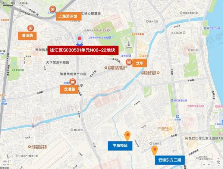 该地块位于徐汇内中环,强生花苑南面,龙华西路东侧,上海师大附中附属龙华中学西侧。出让面积达2公顷,容积率1.59,土地为商品住宅用地性质。11号线和23号线地下贯穿,地块东侧还有龙华烈士陵园和龙华寺。