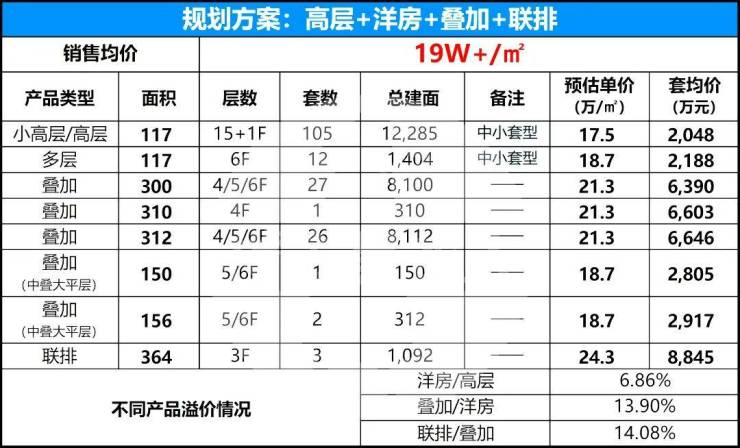 据项目最新流出的产品规划及定价方案:项目整体采用“高低配”方案,产品包括洋房、高层、叠加、联排,未来售价可能在20w+!