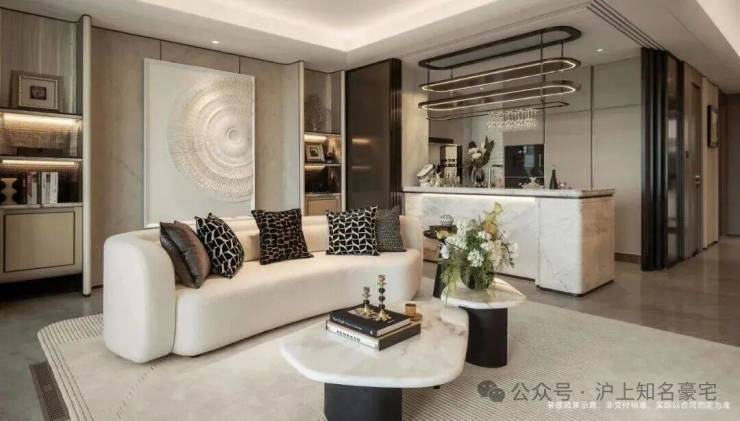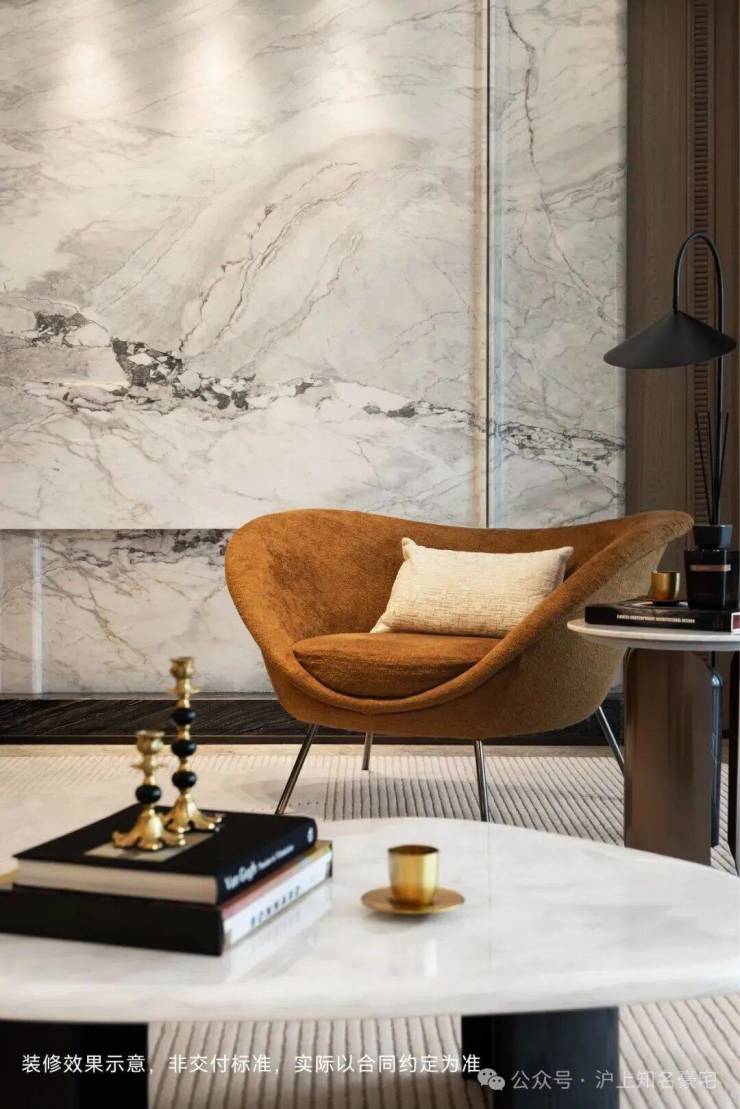 客厅背景墙的“烟雨江南”天然大理石,不同于传统平面背景墙,通过弧度及立体的造型处理,并镶嵌不锈钢材质!对于金茂而言,比奢石昂贵的,是让奢石真正与空间气场融为一体!