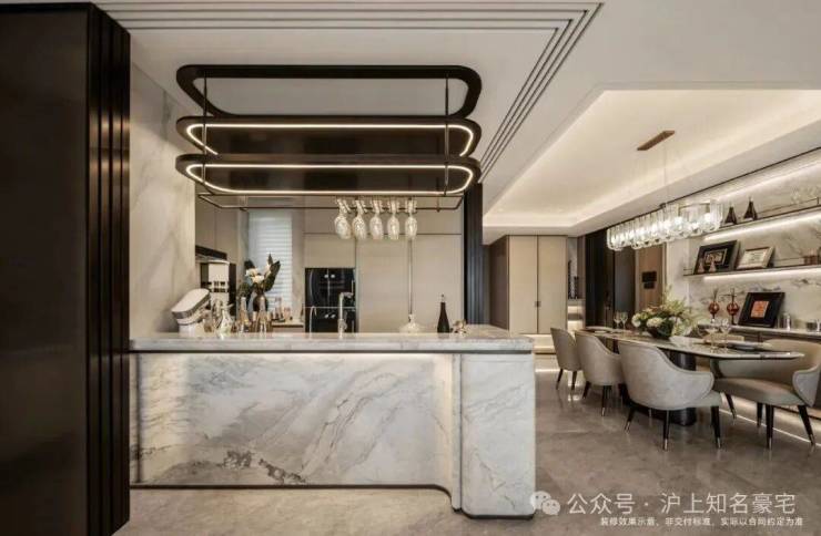 为一块奢石弧形工艺,投入翻倍的成本!整屋坚持用一种昂贵的木饰面贯通始终,从而实现整体艺术风格的统一!
