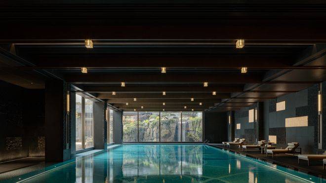 奢华用材就更不用说了,随处可见的墨染流云、白沙米黄、Prada绿、凤羽黑金,到蓝水晶、福鼎黑、中国黑石皮、美国白金……堪称奢石博物馆。还有一个别的楼盘难以超越的是建面约2000方下沉式会所,有恒温泳池、健身房、私宴厅、茶室等功能空间,全都环绕中央水庭而设,风景旖旎。