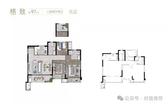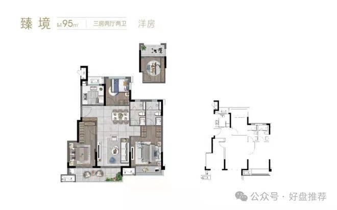 洋房建面约95㎡户型,功能性更加完善齐备。