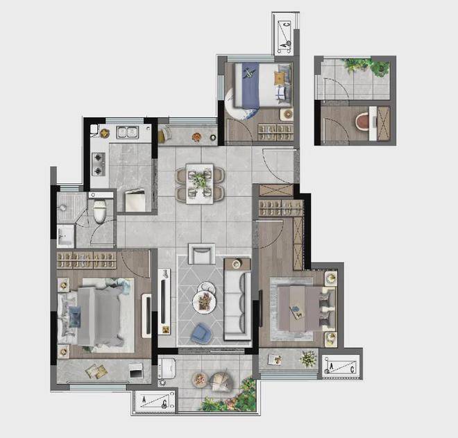 颠覆性品质爆款三房,充分考虑空间利用,巧妙打造,整个空间没有浪费一丝面积。每一个房间都物尽其用,让阳光铺满每一寸生活区。