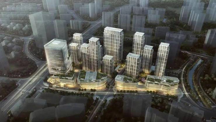 其中住宅建筑面积为9.71万㎡,由10幢高层组成;住宅楼基本都位于地块的北侧,南面则是办公和商业,预计可售住宅约586套。