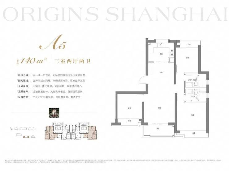 建面约140m²3房2厅2卫:格局上做到三开间朝南+南北通透,让业主起居之间沐浴更多阳光。