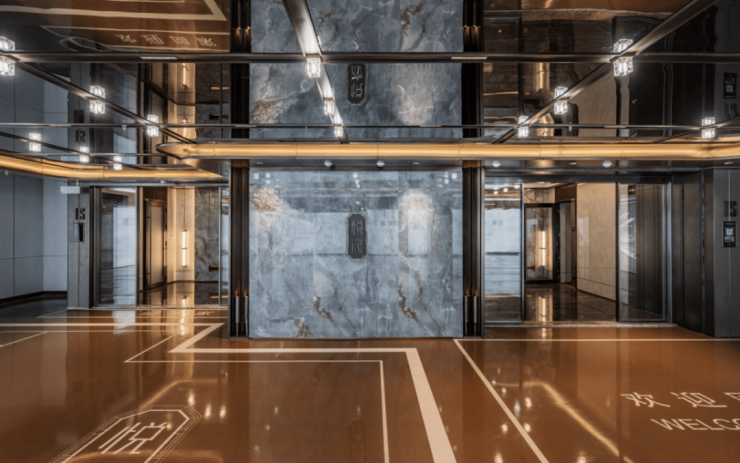 即使在地库,虹桥嘉悦府同样采取高标准设计,采用定制古铜色不锈钢收边、踢脚线、门套、仿古铜色铝板,配以大规格卡塔青玉岩板、镜面不锈钢,彰显优雅艺术品位。