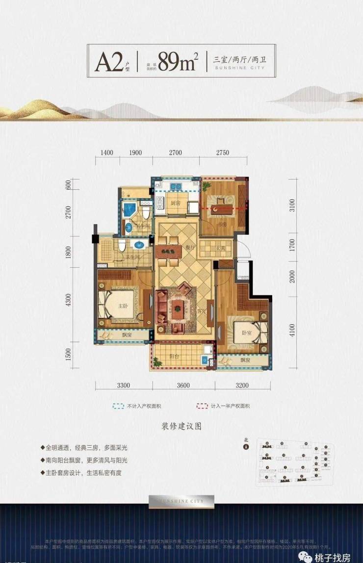 A1户型 :89方(3房2厅2卫)