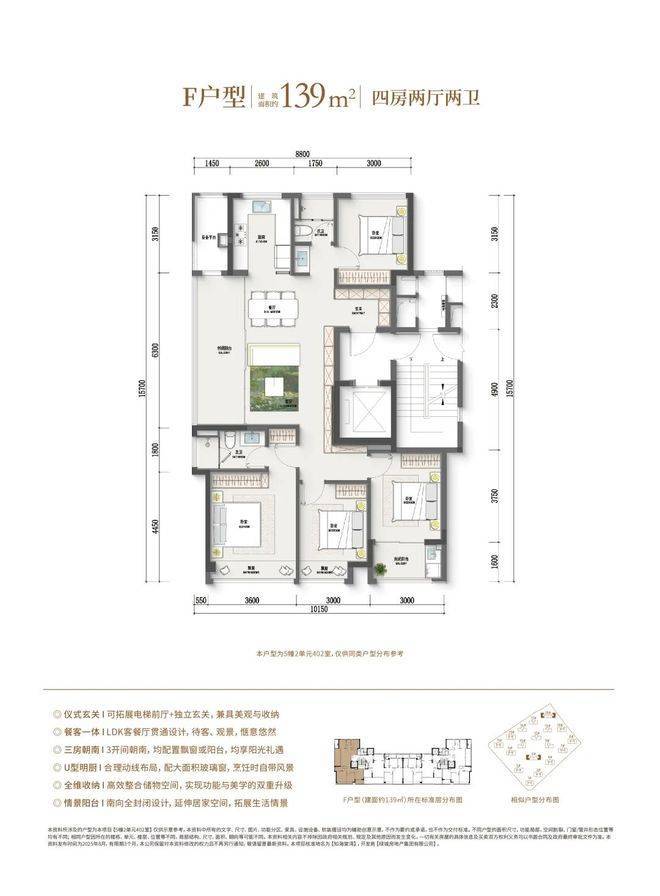 (四房户型,滑动查看更多户型图)