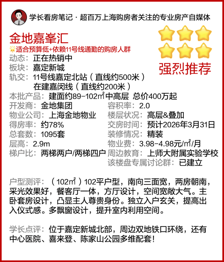最新消息,嘉定新城「金地嘉峯汇」正在热销中!推出建面约89-102㎡中高层,总价400万起!