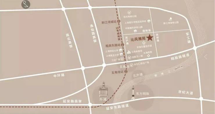 「沁风雅苑」从地块上看,该楼盘位于新江湾城安徒生童话公园以北,政和路与国晓路交汇处,位置较为优越;距离10号线新江湾城站、殷高东路站、三门路站都很近;自驾出行,可开车直通逸仙高架,到人民广场38分钟。