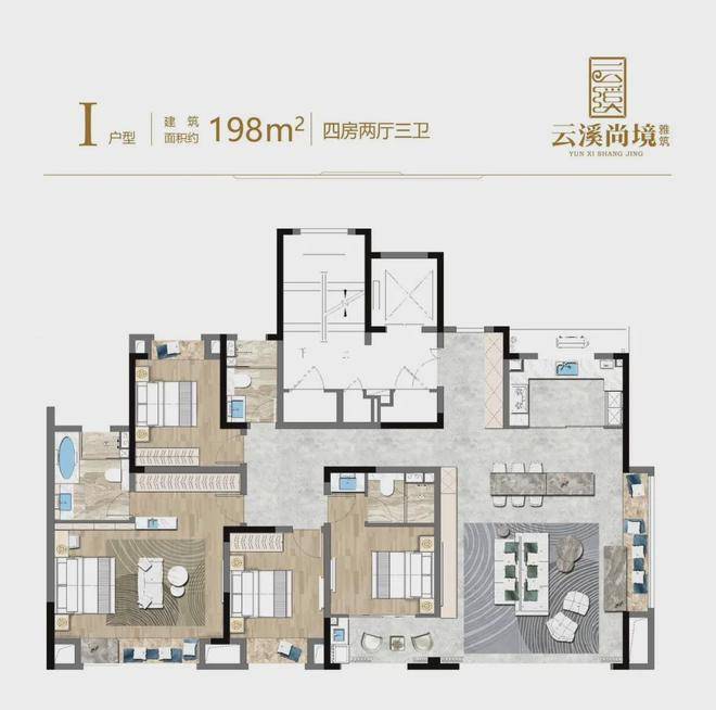 179-208㎡奢阔四居:总价300万-380万,配置中西双厨、双套房。