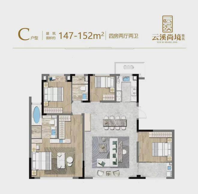137-146㎡四居:总价180万-220万,客餐厅空间近5.7米。