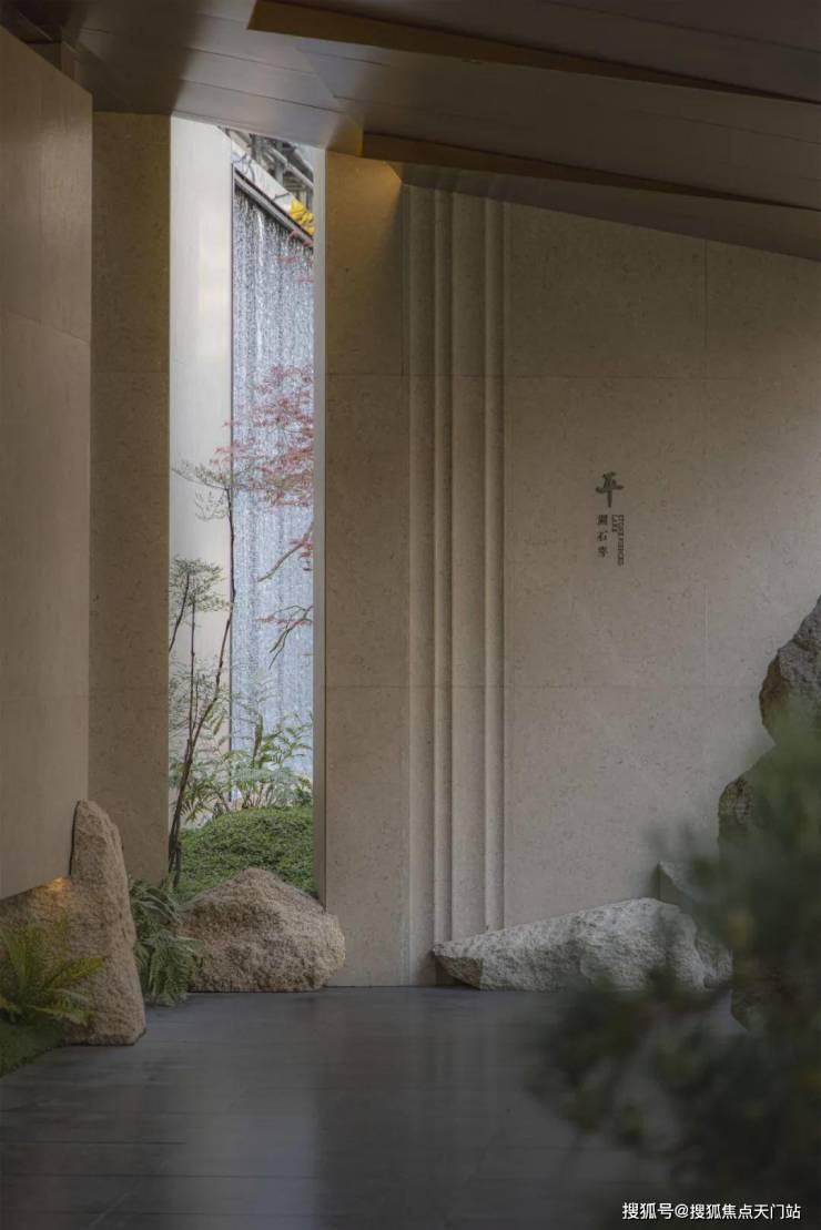 越秀外滩樾的公区庭院非常精致,其精心打造充满禅意的山水庭院。