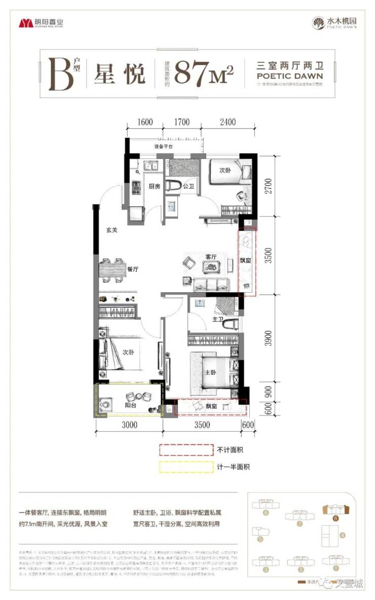明阳自然不会放过这一优势,南立面直接【全封闭阳台】+【三玻两腔玻璃】。