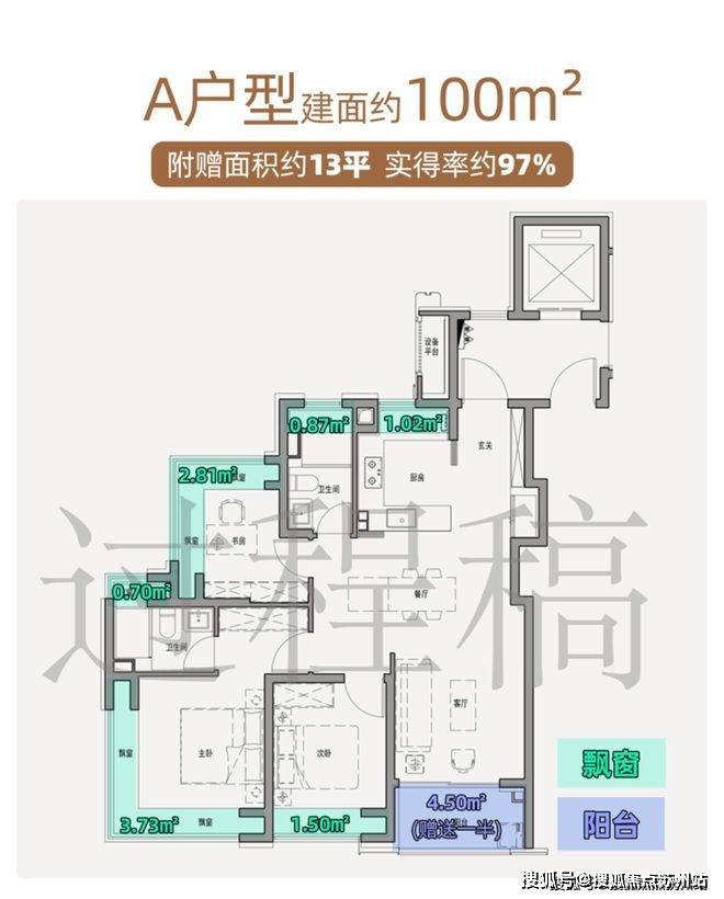 全屋7飘窗+半封阳台,赠送面积近20㎡,实得率约94%。