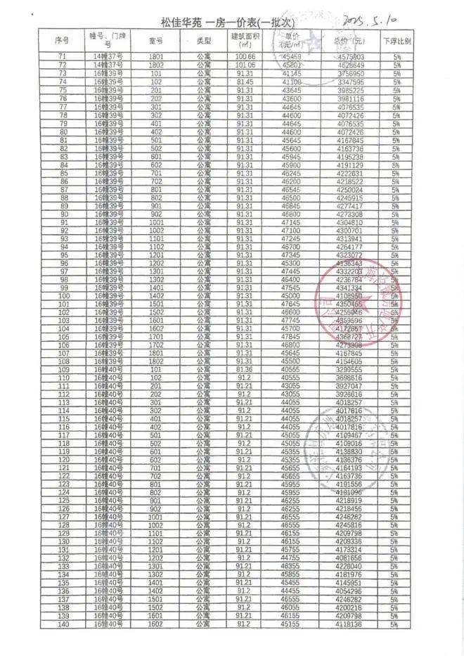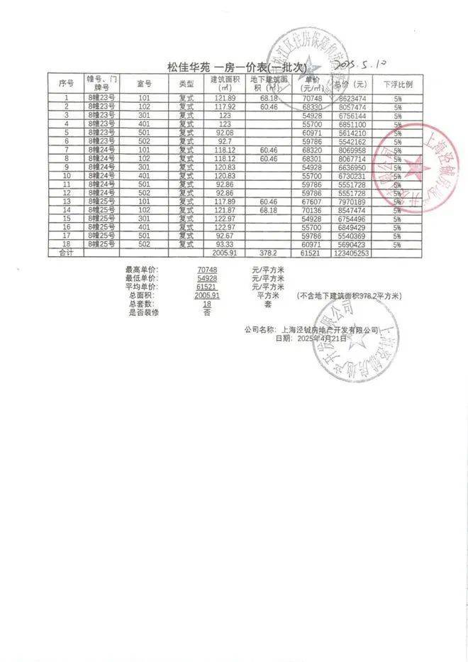 一房一价表如下: