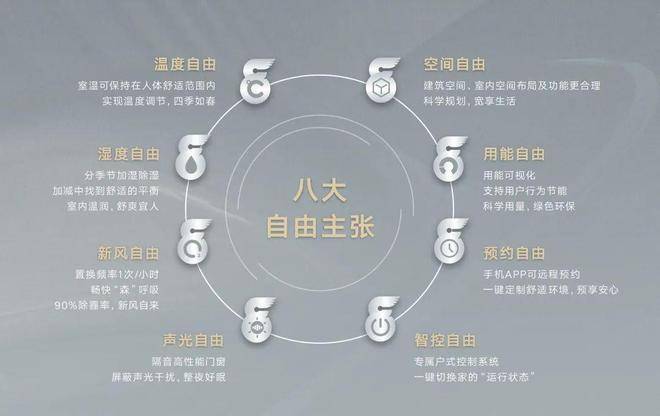 八大自由主张: · 温度自由:不用空调,四季如春;温度均匀,无温差感。