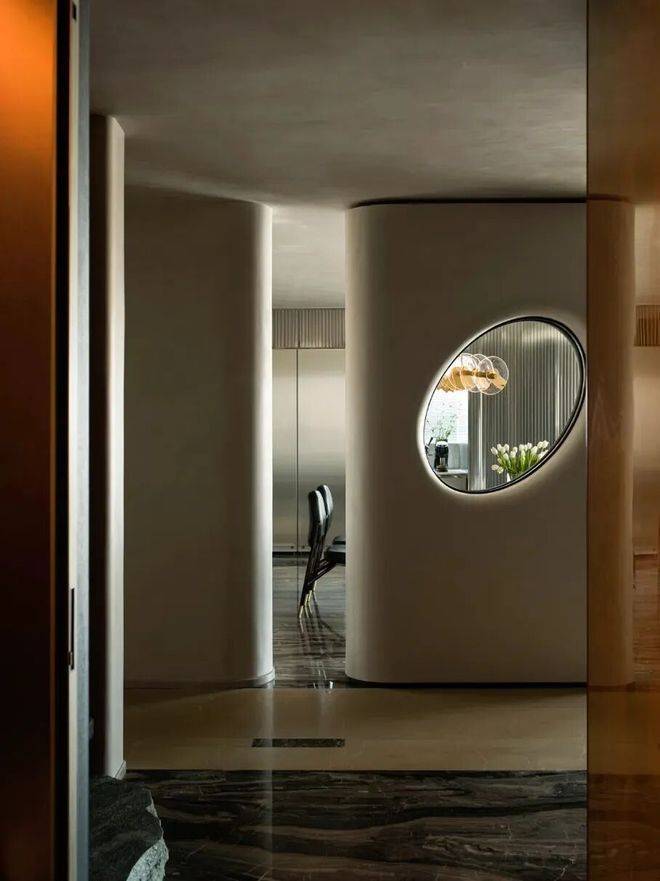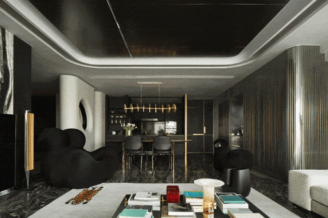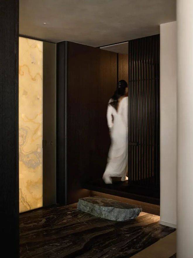 此外,整个全维实景示范区,对珍贵奢石的使用同样让人惊叹。从社区门庭、建筑立面的铂金钻,到会所空间的蓝翡翠、碧水玉、维多利亚绿等,以及室内空间的科莫白金岩板、欧亚木纹岩板……在不同的空间中,奢石被自然点缀其中,没有丝毫的刻意,有的只是一种令人赞叹的艺术美感和精致工艺。