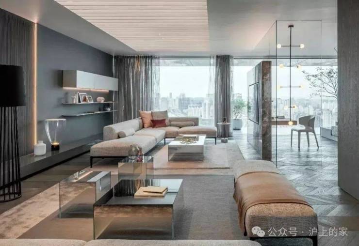 当然光是大落地窗肯定还有些单调,进步设计在利用框架剪力墙结构做到的分割大平层。