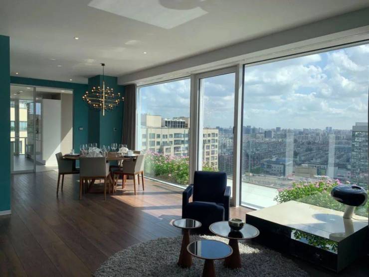 为此他们不惜敲掉5000万把整个小区全变成了森林,实现了不可能的100%绿化;建筑结构完工时还敲掉了外墙及部分内墙,实现360°落地窗。