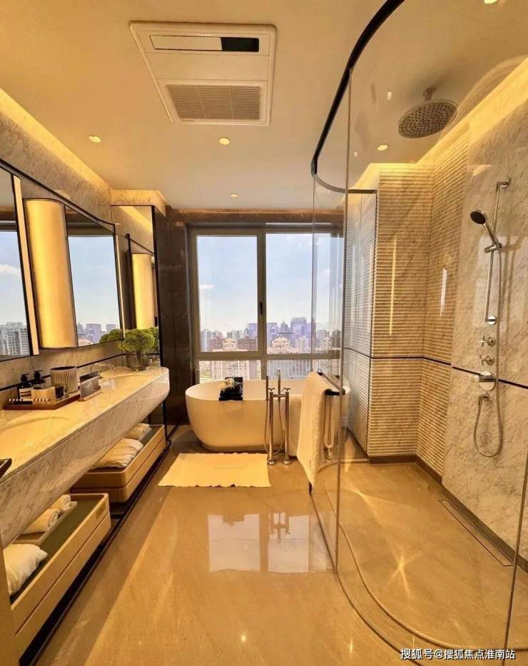 双台盆豪华主卫,带大尺度淋浴空间,同样采用了弧形设计: