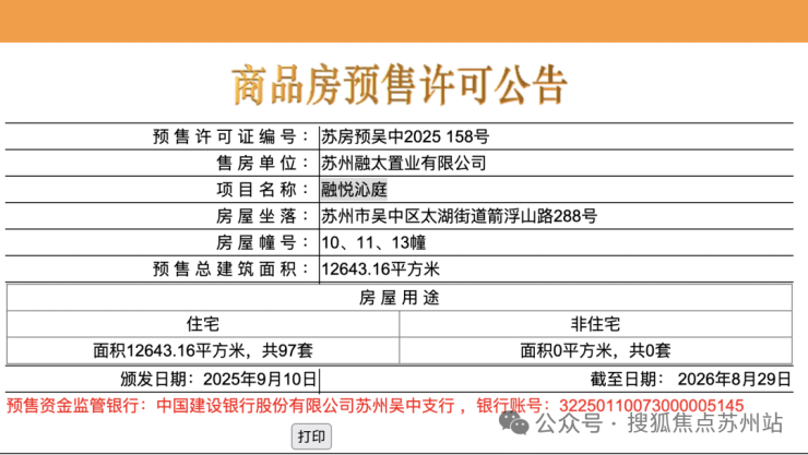 吴中太湖新城纯低密洋房——融悦沁庭新一批次取证!共有97套,全装修交付。