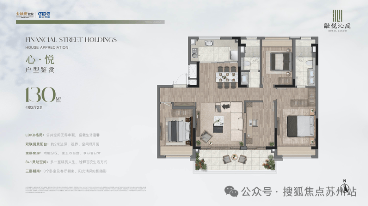 与市面上的户型相比,融悦沁庭没有一味地追求大,而是打造建面约115/130/152㎡三种。