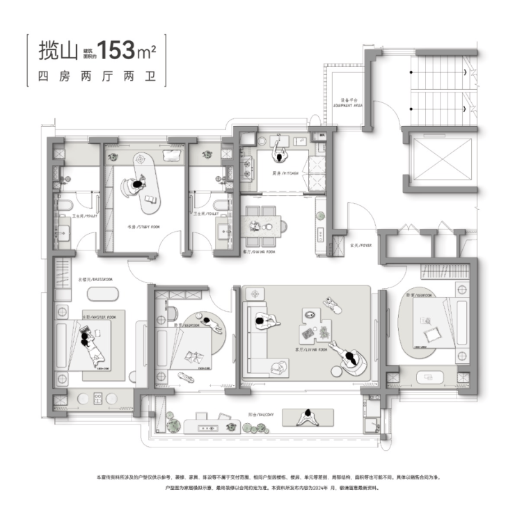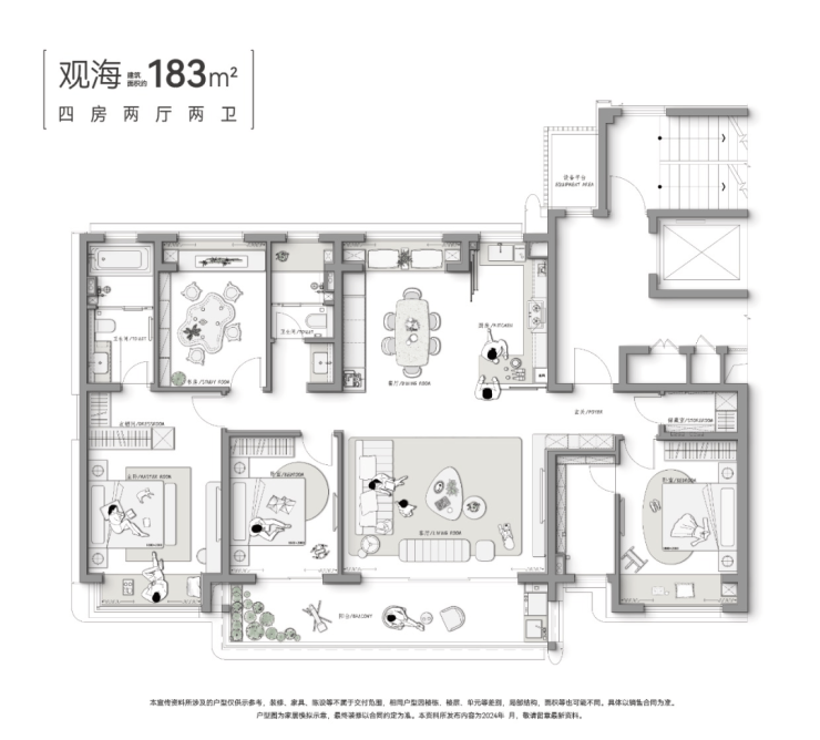 目前已经取证的2个户型,建面约153、183㎡户型均为4房2厅2卫设计,全卧室朝南、大横厅,宽景双联阳台,全屋带飘窗,采光通风效果卓越。