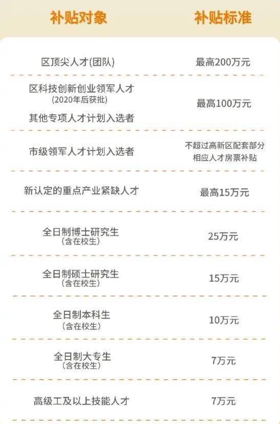 对全日制普通高校大专生、本科生、硕士研究生、博士研究生,分别给予7万元、10万元、15万元、25万元房票补贴。