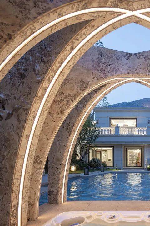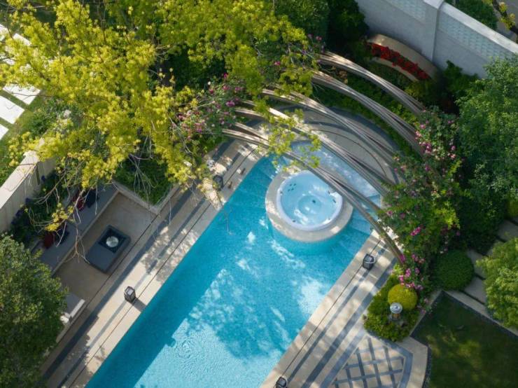极具雕塑感的连廊,串联瑰丽奇境,惬意自在的泳池与水疗池开启享受独有的身心放松之旅,在繁花似锦的花园里,生命之树探出茂盛的天空吊顶,感受阳光与绿意的交错,不仅仅是居所,更是生态生活的信仰。