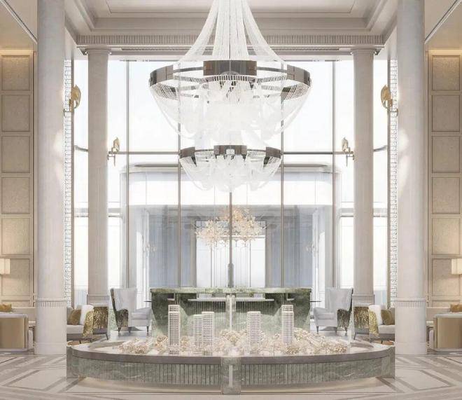 香槟金色格栅塔冠与壁柱 形成的形制立面,完美演绎“玺”系基因的精髓,尽显低调奢华的气质。