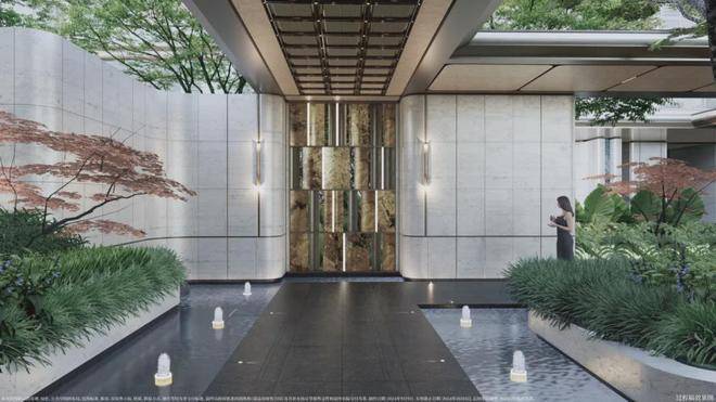基座更是采用 大面积石材 搭配 艺术玻璃古铜色金属窗框,辅以奢石、艺术 等点缀,从上到下,处处皆是奢华质感。
